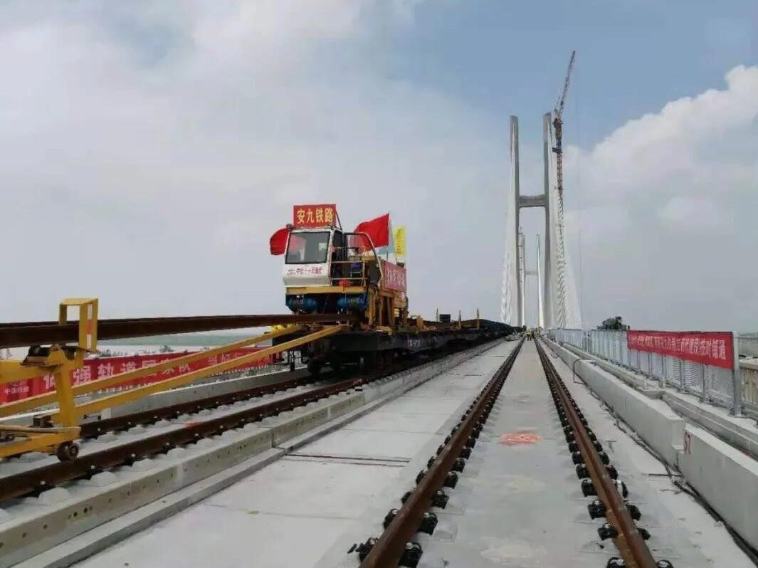 At 11 o'clock on August 29, 2021, at the construction site of the Anjiu High-speed Railway Bream Island Yangtze River Bridge at the junction of Huangmei County, Hubei Province and Jiujiang City, Jiangxi Province, along with the construction personnel of China Railway 11th Bureau laying a pair of long rails at the head of Jiujiang Bridge On the ballastless bed, the laying of the tracks for the Hubei section of the Anjiu high-speed railway has been completed.