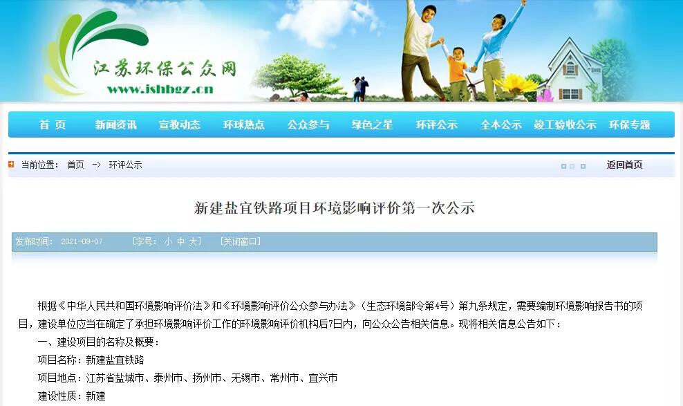 On September 7, 2021, the "First Public Announcement of the Environmental Impact Assessment of the New Yanyi Railway Project" was released on the Jiangsu Environmental Protection Public Network. It is understood that the project completed the preparation of the feasibility study report in October 2020, and completed the feasibility study review and review in March 2021, and has now entered the preliminary design stage. It is expected that the approval of the feasibility study report of the Yantai-Xichang-Yichang Railway will be completed in October 2021, and the preliminary design of the entire line (excluding the section across the river) will be completed in November. It is expected to officially start construction in 2022.