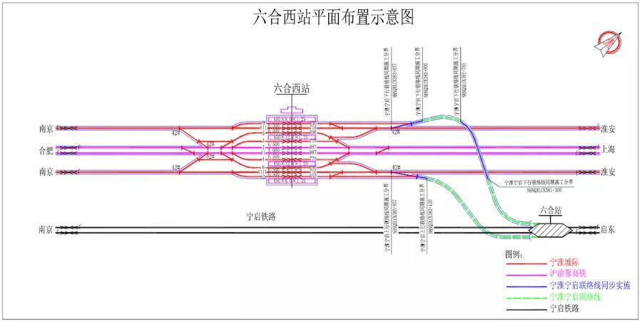 The Ninghuai Intercity and Shanghai-Chongqing-Chengdu high-speed rail stations are incorporated into Liuhe West Station. Except for the Shanghai-Chongqing-Chongqing high-speed rail main line project, the rest of the station works will be undertaken by this project. The Ninghuai intercity outsourcing introduces Liuhe West Station. The station scale is 4 stations and 10 lines (including Ninghuai and Shanghai-Yurong main lines), and the station flat slope is flat.