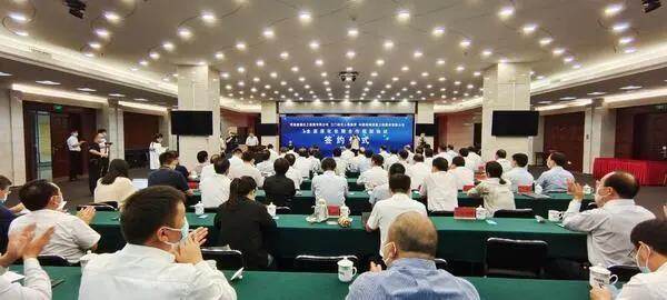 Guests from Henan Provincial Development and Reform Commission, Provincial Department of Industry and Information Technology, Provincial Department of Eco-Environment, Provincial Department of Emergency Management, Henan Energy Group, and relevant leaders of Sanmenxia City gathered together to attend the comprehensive deepening of the long-term cooperation framework between Sanmenxia City Government and Henan Energy Agreement signing ceremony and Henan Sanxia Yuneng New Energy Co., Ltd. unveiling ceremony.
