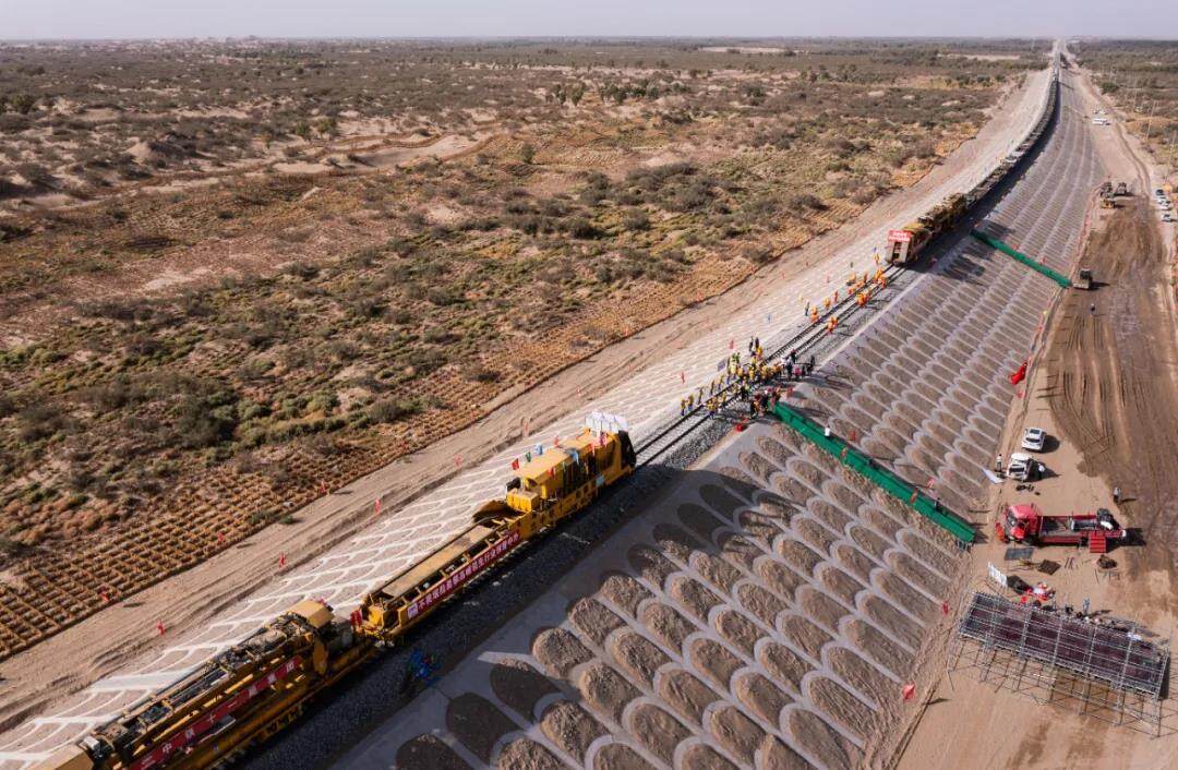 On the morning of September 27, 2021, at the construction site of Xinjiang’s Heruo Railway, as the last pair of long steel rails reached the junction and accurately settled, it was designed by the First Railway Institute and the China Railway 11th Bureau and China Railway 14th Bureau were responsible for the entire line. The track laying task of Xinjiang He (Tian) Ruo (Qiang) Railway was completed, and the world's first ring-desert railway was officially closed.