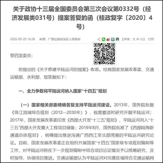 In short, on the one hand, the canal involves a wide range of projects, and technology and capital are major issues. The other is the issue of regional game. For example, the construction of the canal will inevitably affect the lower reaches of the Pearl River, which is opposed by Guangdong. Now that the new western land-sea corridor has been upgraded to a national strategy, the Ministry of Communications and the National Development and Reform Commission have clearly stated their support for the construction of the Pinglu Canal. This is another opportunity given to Guangxi by the state. Guangxi should seize this opportunity to actively seek support from relevant state ministries and commissions to include the Pinglu Canal as a key project in the national "14th Five-Year Plan" and start construction as soon as possible.