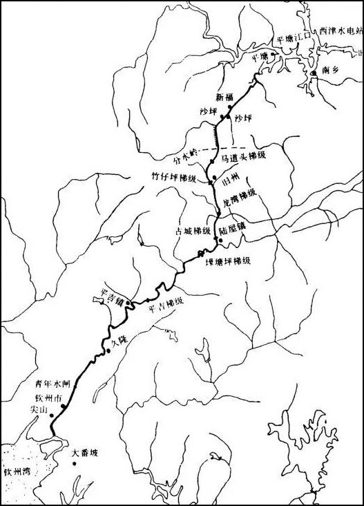 On November 5, 2021, the Guangxi Department of Transportation issued the "First Public Announcement of the Environmental Impact Assessment of the New Western Land-Sea Corridor (Pinglu) Canal Channel Planning". The planning scope of the Pinglu Canal is from the mouth of the Pingtang River in the Xijin Reservoir Area, the main stream of the Xijiang River, along the Shaping River, across the watershed, and then along the Jiuzhou River down to Luwu, and flows into the sea via the Qinjiang River to Qinzhou Port. The total length is about 140km. . The overall route is divided into 4 sections: Shaping River Section, Watershed Section, Qinjiang River Mainstream Section, and Sea Port Section.