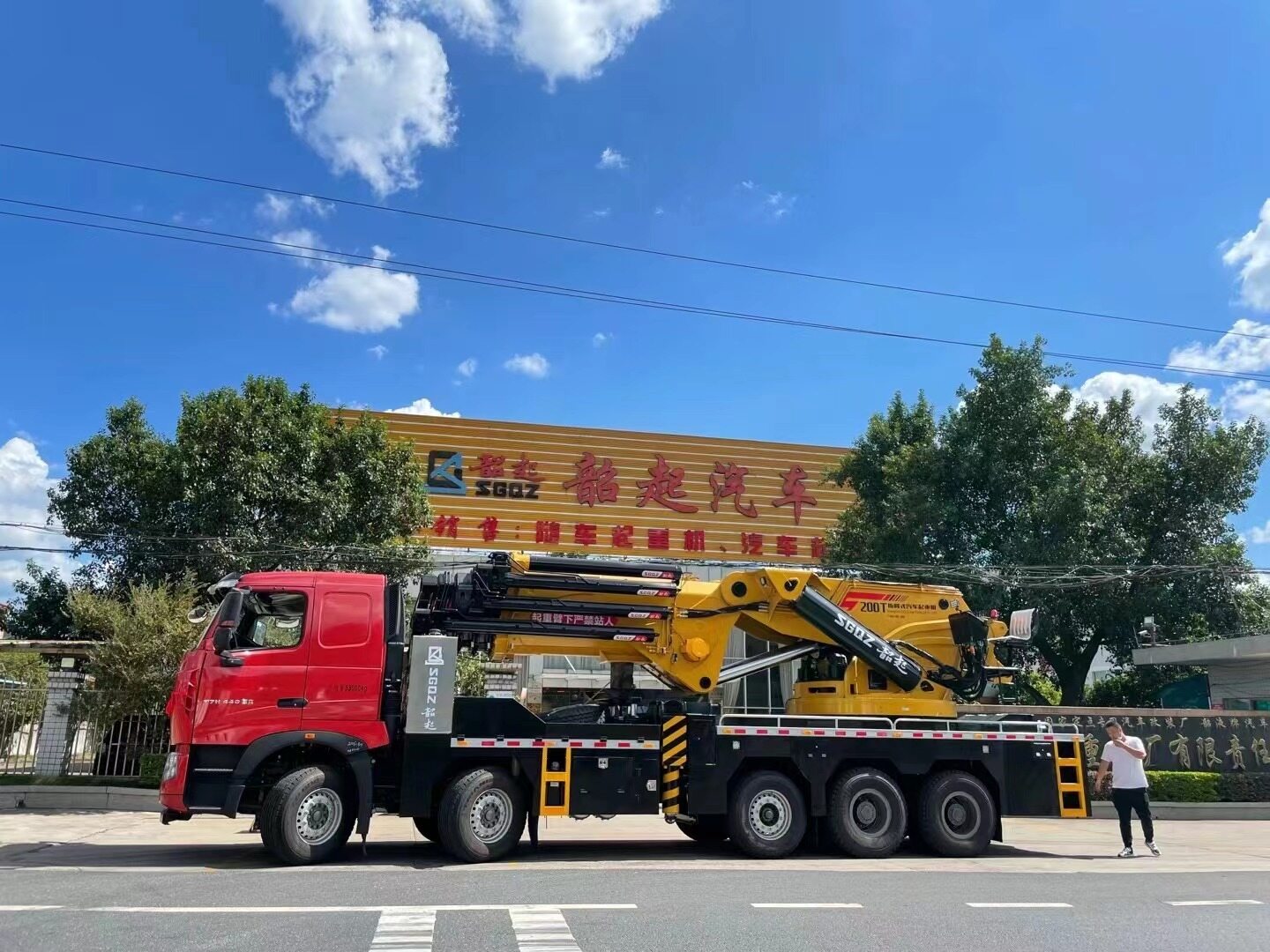 From day to night, from Guangdong, Shenzhen, Zhuhai, Foshan, Guangxi to Tangshan, Beijing, Southeast Asia, and the Americas, SGQZ cranes are running at full capacity and operating efficiently. As an old brand of truck-mounted knuckle cranes, the SQ200T truck-mounted knuckle crane, which SGQZ invested heavily in independently developed and manufactured, was officially launched in 2018. After many market research and customer visits, Shaoqi has joined forces with Dalian University of Technology and Shaoguan. The college independently carried out innovative research and development, and once the product came out, it filled the gap of domestic knuckle boom cranes above 200T.
