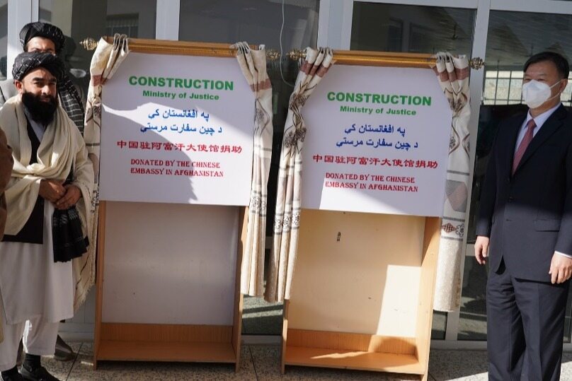 On December 12, 2021, the foundation stone laying ceremony for the construction of wells of the Ministry of Justice of the Afghan Interim Government by the Chinese Embassy in Afghanistan was held in the Ministry. Ambassador Wang Yu with Abdul Hakim Shaliy, Acting Minister of the Ministry of Justice of Afghanistan, Acting Deputy Minister of Information and Culture, Mujahid, Spokesperson of the Provisional Government, Governor of Kabul Province Kari Balyar, and City of Kabul Chief Hamdullah Nomani and officials from the Ministry of Hajj and Religious Affairs and the State Administration Office attended the ceremony.