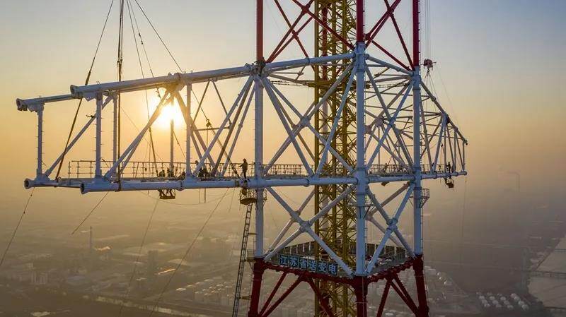 On January 12, 2022, the tallest transmission tower in the world with a height of 385 meters was successfully capped in Jiangsu.