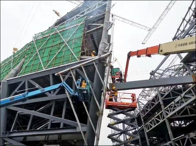 In order to create the craggy effect of Shushan, the project adopts a double-layered curtain wall. The total area of the outer curtain wall is 48,900 square meters. There are more than 70 folded surfaces at different angles. For the remaining ones, the structure is extremely complex and the installation is extremely difficult. The project team has established a technical team for external curtain wall research, and has measured and laid out about 36,000 sorties in total, forming a solid model model of support, keel, and stone panel that integrates site coordinates.