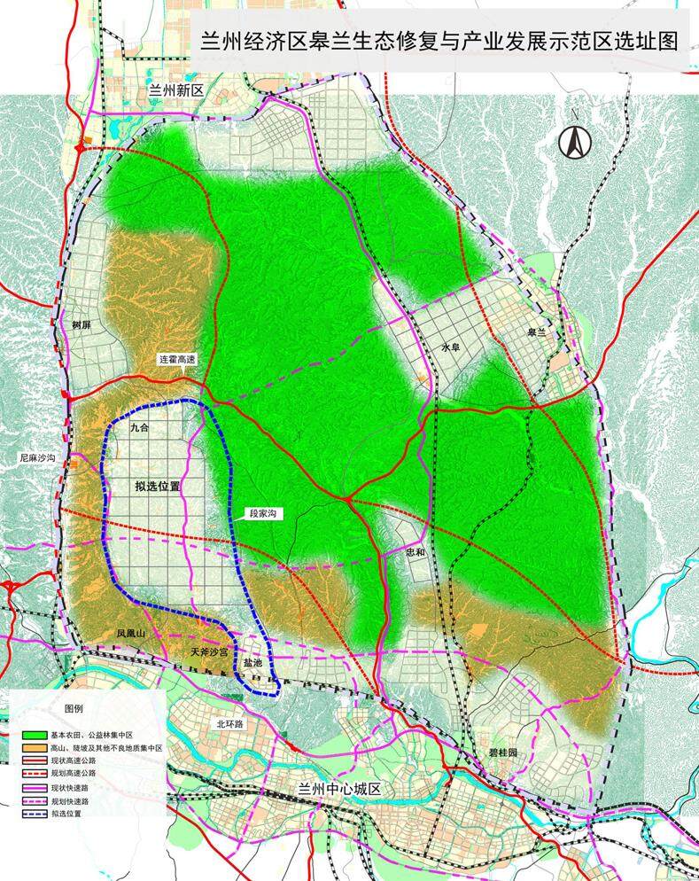 The project area is located in Gaolan County, Lanzhou City, with Angao Highway in the east, Beihuan Road-Tianfusha Palace Reserve in the south, Xianshuigou in the west, and Xiaoshagou-Lianzigou in the north. The total planned area is About 21.07 square kilometers. Highlight the implementation of ecological restoration and the development of modern agriculture, build a green ecological industry system, and focus on the development of modern logistics and strategic emerging industries.