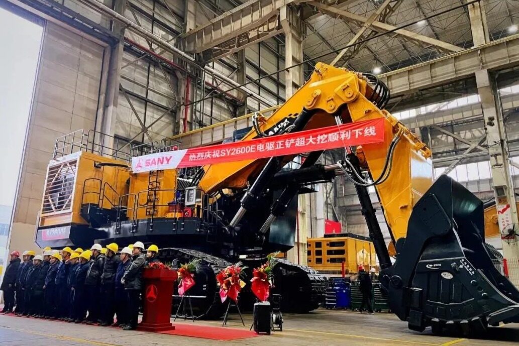 At 8:18 a.m. on January 27th, in the No. 6 workshop of Kunshan Industrial Park, Sanyi 300-ton electric-drive front shovel super digging-SY2600E officially rolled off the production line. This is currently Sany's largest crawler excavator product, which once again achieves a technological breakthrough in the field of ultra-large excavation.
