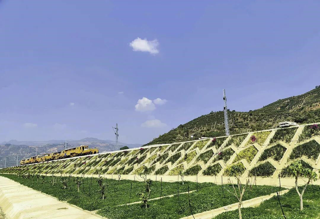 As the first cross-border railway in the world to carry out systematic greening and landscape design across the entire line, under the coordination of China Railway Kunming Railway Bureau Group Corporation and the Southern Yunnan Railway Construction Headquarters, the greening and landscape design project of the Yumo section of the China-Laos Railway has been successfully completed. Walking along the road, the green ecological promenade that moves with the car shows a beautiful appearance.