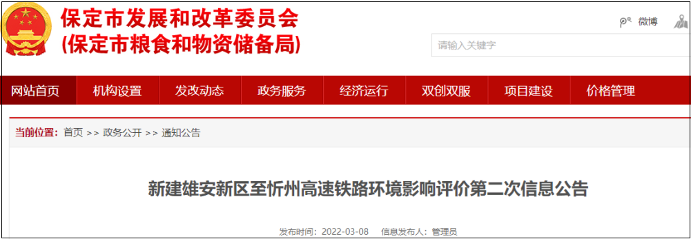 On March 8, 2022, the "Second Information Announcement of the Environmental Impact Assessment of the New Xiongan New Area to Xinzhou High-speed Railway" was released on the websites of the Xiongan New Area, Baoding City, and Xinzhou Municipal Government. ) was officially announced, and the project construction plan and station establishment plan were basically determined.