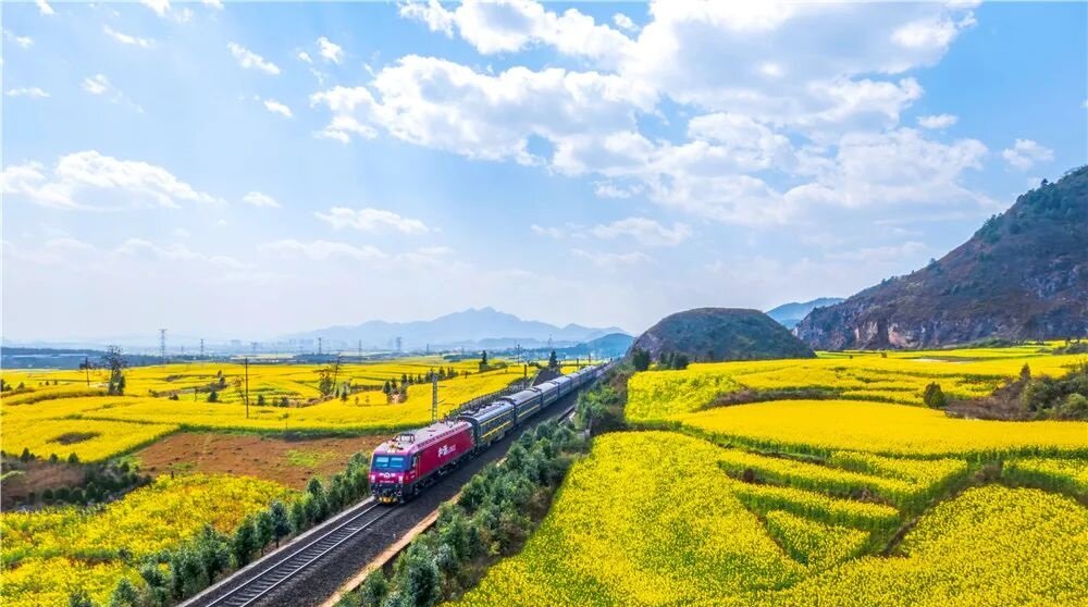 With the flowers blooming all over Yunnan, the flow of flower viewing has gradually increased. Starting from March 4, 2022, China Railway Kunming Bureau Group Co., Ltd. will run a special train for flower viewing between Kunming and Luoping on weekends.