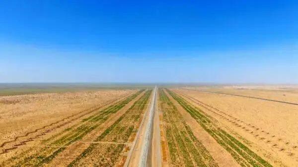 In order to allow the shelterbelt to flourish as soon as possible, the Heruo Railway has applied the intelligent agricultural irrigation system that has been popular in China in recent years. This system has a total of 131 wells with a maximum depth of 280 meters and a coverage area of 280 meters. Up to 113,510 mu