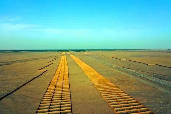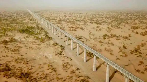 A total of 5 "cross-sand bridges" with a length of more than 40 kilometers have been constructed on the whole line. These overhead bridges can allow wind and sand to pass under the bridges, reducing the impact of wind and sand on the line and train operation. If the railway travels through the desert, overlooking from the air, the windbreak and sand-fixing belt that stretches for more than 300 kilometers is full of greenery and vitality.