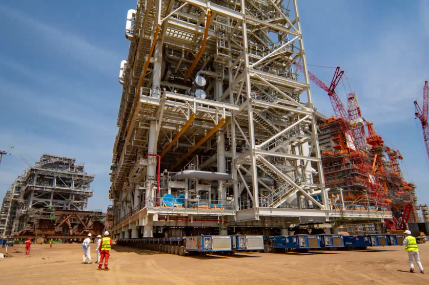 On May 31, 2022, the world's first integrated construction of the world's first integrated LNG modular plant, the heaviest core process module A1EC, was successfully delivered at the Qingdao Construction Base of Offshore Oil Engineering Co., Ltd. So far, the Canadian LNG project has successfully delivered 10 modules and completed the capping of all module structures. At present, the overall construction progress has exceeded 80%, laying a solid foundation for the project to be delivered on time.
