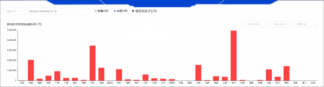 In the first half of 2022, the main sources of MCC orders are: Sichuan, Hebei, Anhui, Chongqing, Shandong, Yunnan, Henan, Hubei, Guangdong, etc. Among them, Sichuan, Hebei and Anhui are the bases of many subsidiaries of MCC. For example, China Fifth Metallurgical, at the 2022 work deployment meeting, Zhu Yongfan, Secretary of the Party Committee and Chairman of China Fifth Metallurgical Group, emphasized that it is necessary to continue to stabilize the basic market of Sichuan, rapidly expand the core of Shanghai, break through the "two poles and four directions", and actively expand diversified markets. ; We must pay close attention to special debt projects and capital leveraging projects, prudently do a good job of fully funded projects, and bravely create a new situation in marketing.