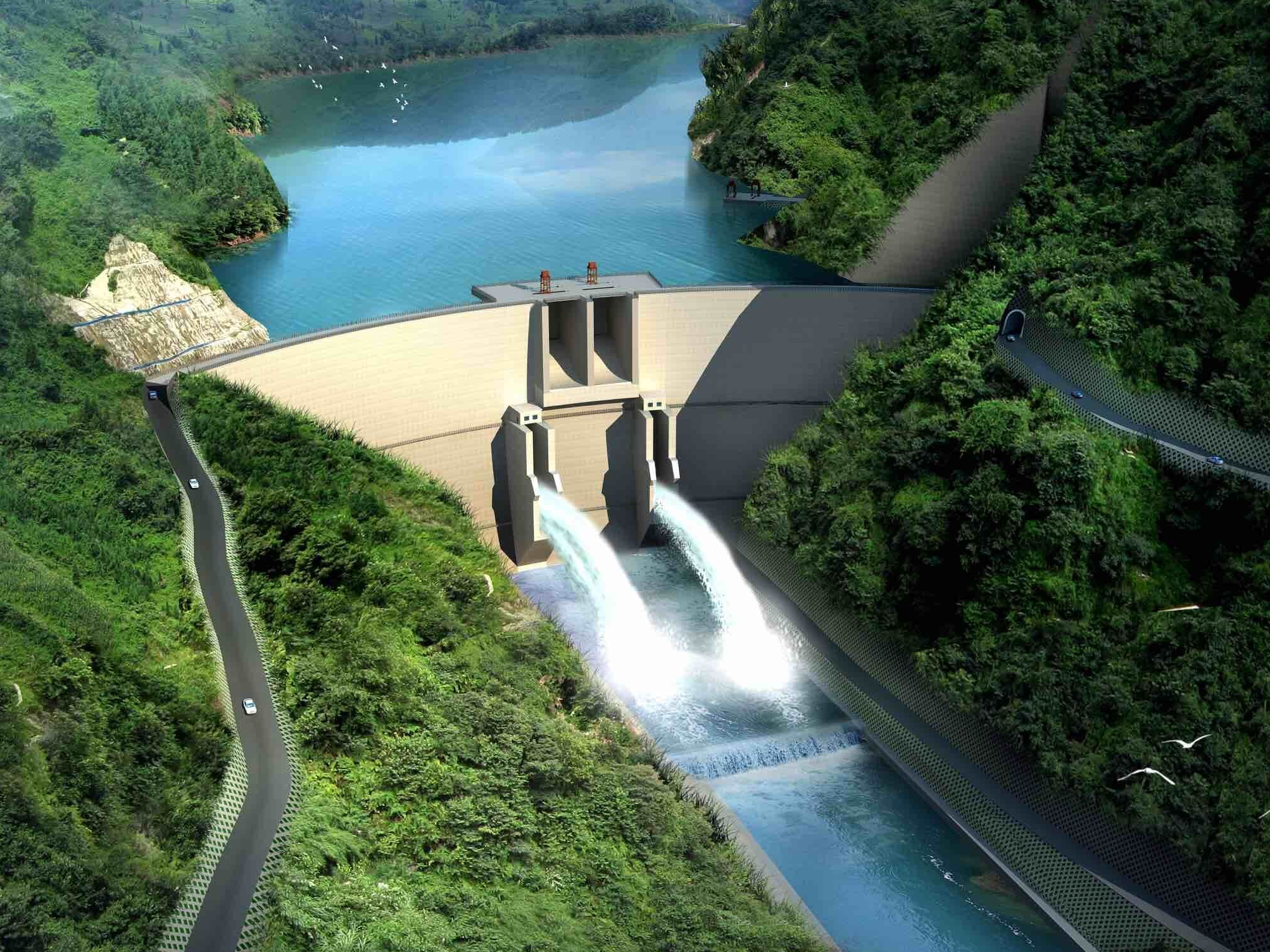 The Gujun Reservoir Hub is located in Gujun Township, Wanyuan City, Dazhou. The reservoir is 65 kilometers away from Wanyuan City, and the rainfall area above the dam site is 617 square kilometers. The total storage capacity of the reservoir is 128 million cubic meters and the flood control storage capacity is 78 million cubic meters. The dam uses a roller compacted gravity dam, the axis of the dam is straight, the maximum dam height is 77.2 meters, and the installed capacity is 120,000 kilowatts. The main buildings include water retaining dams, flood discharge and energy dissipation buildings, and diversion power generation buildings. The total project investment is 1.797 billion yuan.