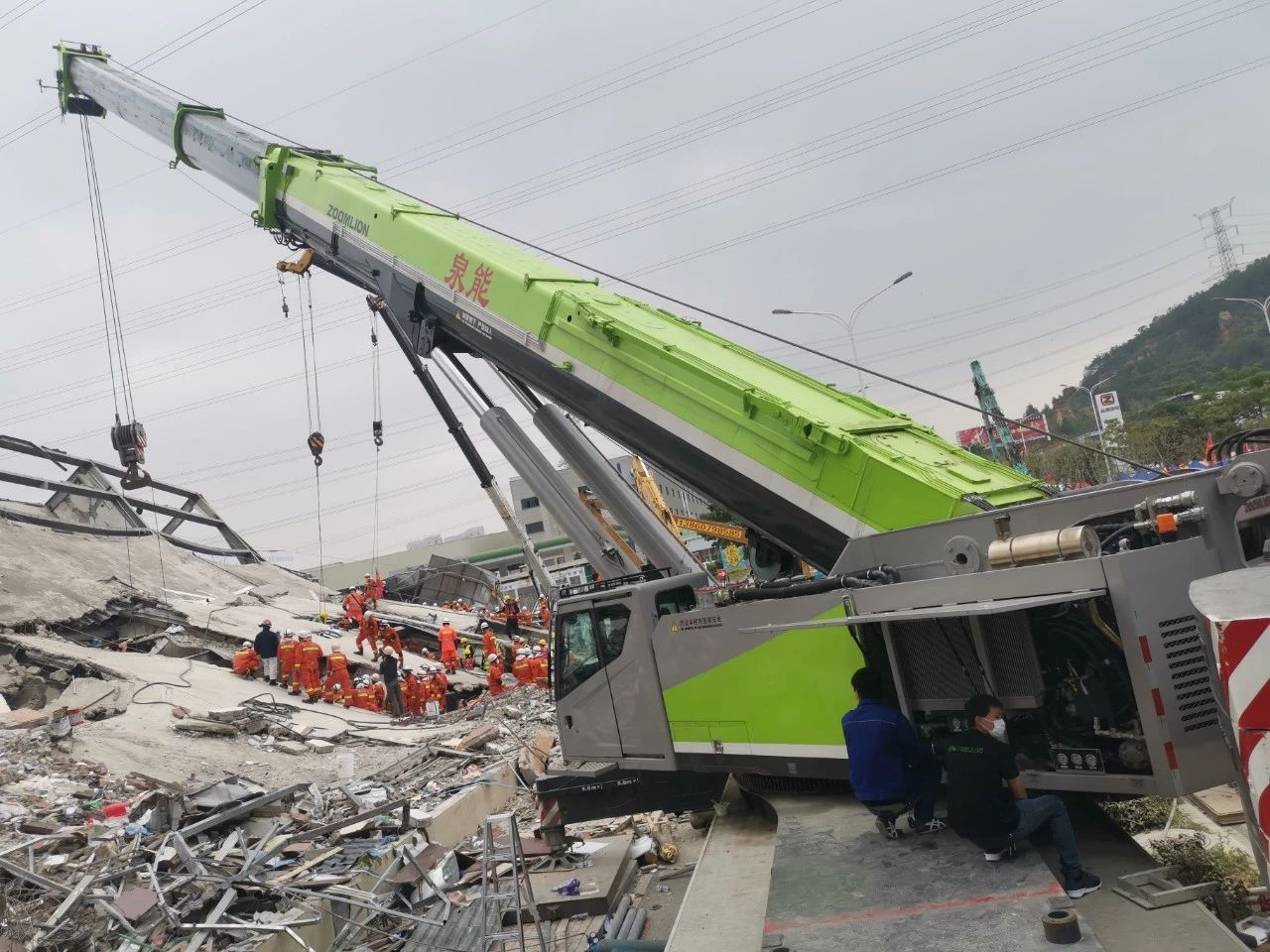 On March 7, 2019, the Xinjia Express Hotel in Nanhuan Road, Quanzhou City, Fujian Province collapsed and about 70 people were trapped. After learning the news, Zoomlion did its best to organize the two cranes of 25 tons and 400 tons and the staff to participate in the rescue in accordance with the higher-level deployment as soon as the demand was known!