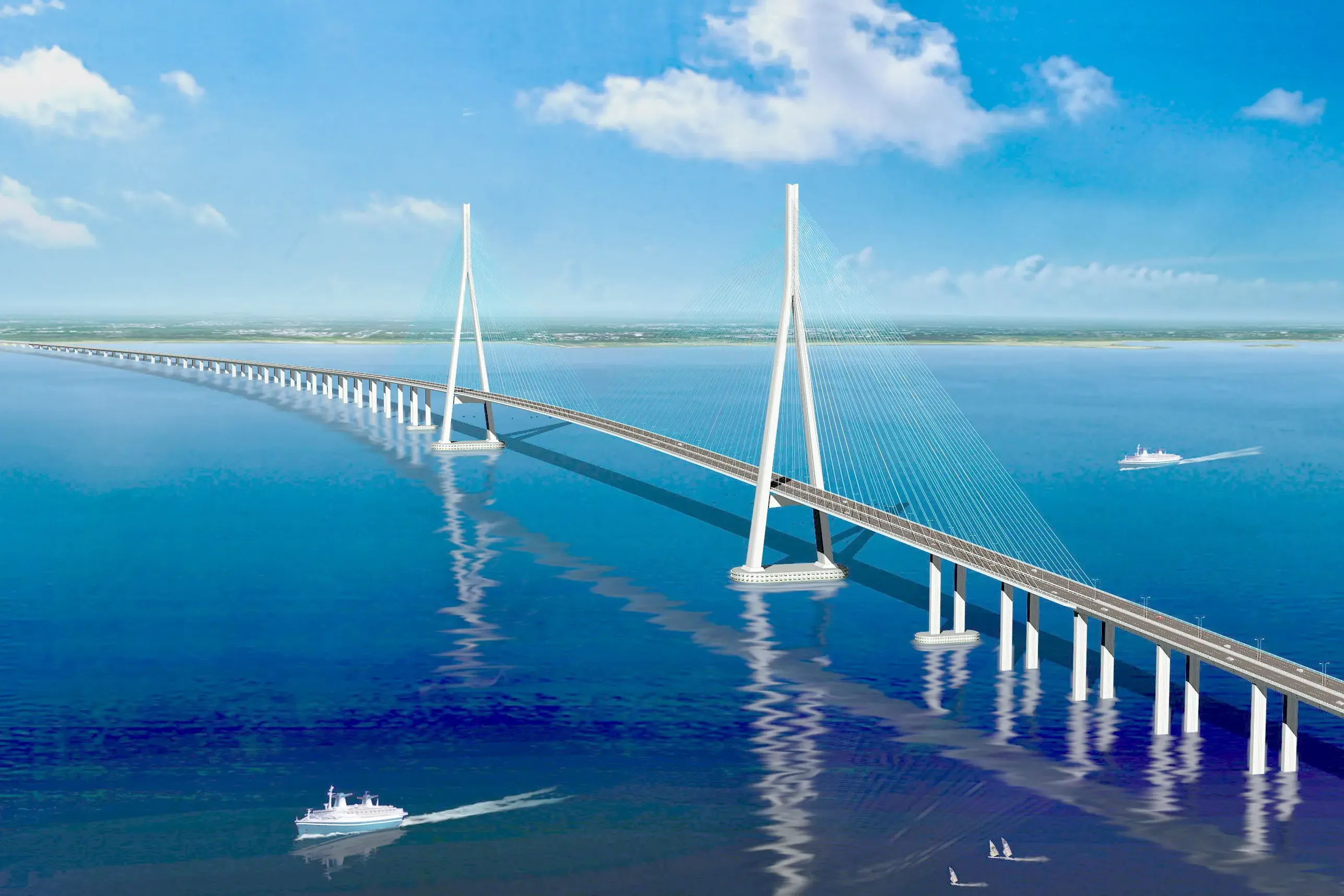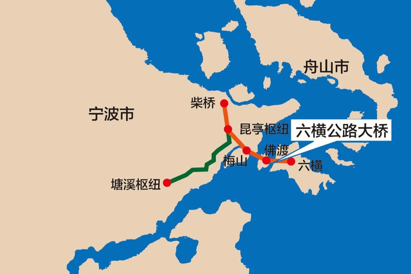 The second phase of Liuheng Highway Bridge Project in Ningbo Zhoushan Port, Zhejiang Province starts from the southwest side of Liuheng Island and the south side of Ganyan outside Ganyan Village. Connection, the route passes through Xiaoguojuwei Reclamation Area, enters the sea at Huoshaoshanzui, and sets up the Shuangyumen Navigation Hole Bridge to cross the Shuangyumen Waterway. After logging in on Fodu Island, set up Fodu Interchange, and then the route goes westward into the sea, and the Qinglongmen Navigation Hole is set up. The bridge spans the Qinglongmen waterway. After logging in on Meishan Island, the second-phase main line part of Meishan interchange and two ramps in the direction of Zhoushan will be implemented. The end point of the route is K19+402, and the total length of the route is 18.782 kilometers.