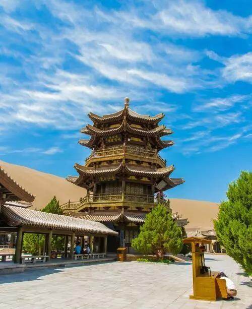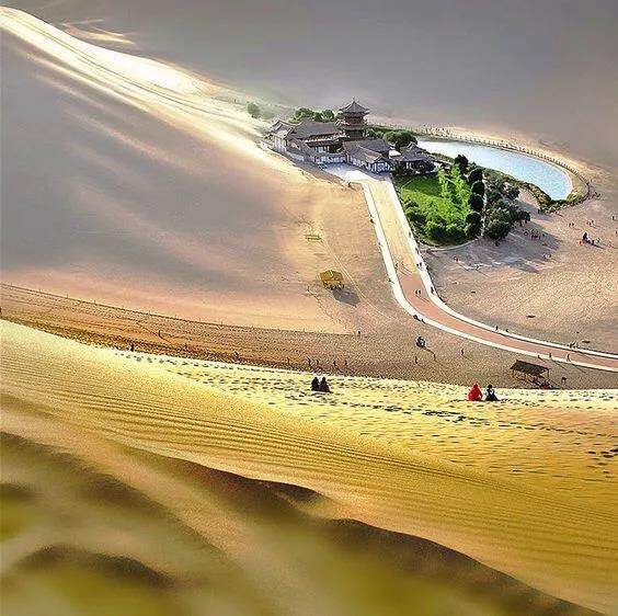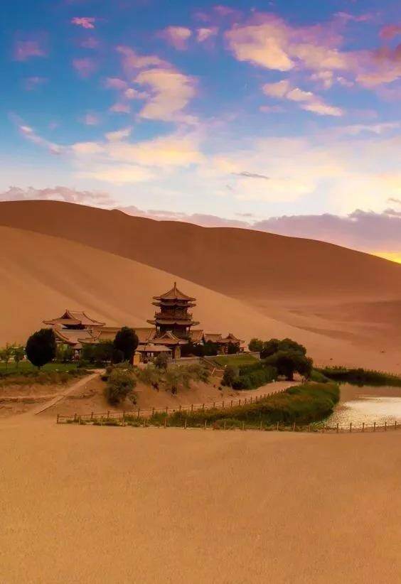 The clear yellow Mingsha Mountain and the clear crescent springs are interdependent, and the strange and charming scenery will last for thousands of years.