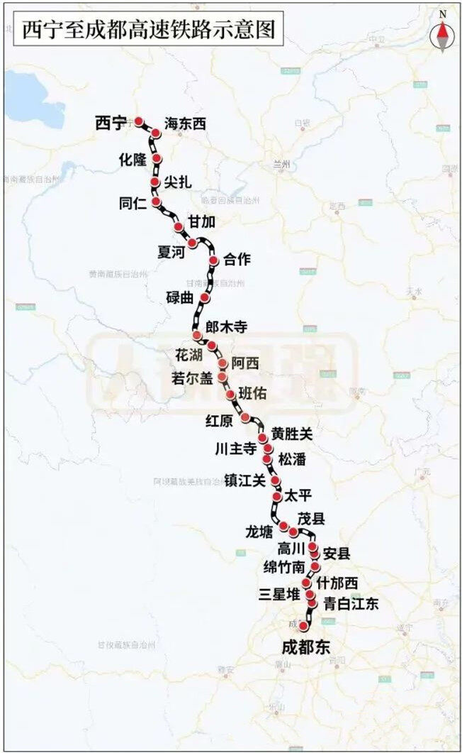 According to introducing, xining and chengdu high-speed railway across qinghai, gansu and sichuan provinces, the line from xining hub middle west station derivation, successively by the eastern city, Tibetan autonomous prefecture in qinghai province, gansu province, gannan Tibetan autonomous prefecture, aba Tibetan and qiang autonomous prefecture, sichuan province, after the closed wong shing with ChengLan railway in the construction practice, collinear introduce chengdu hub. There are 29 stations on the whole line, including 4 existing stations and 25 new stations.