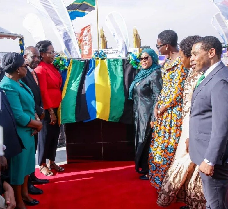 President Hassan (fourth from the right in the front row) unveiled the Dodoma Airport Project