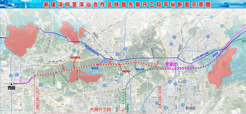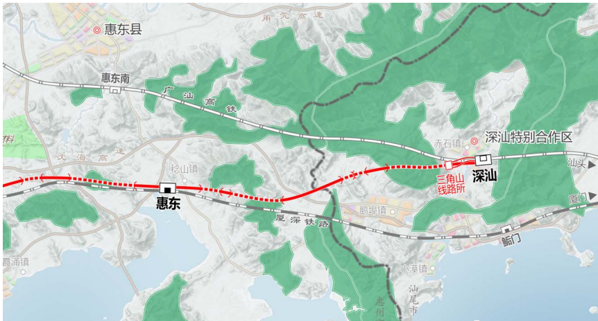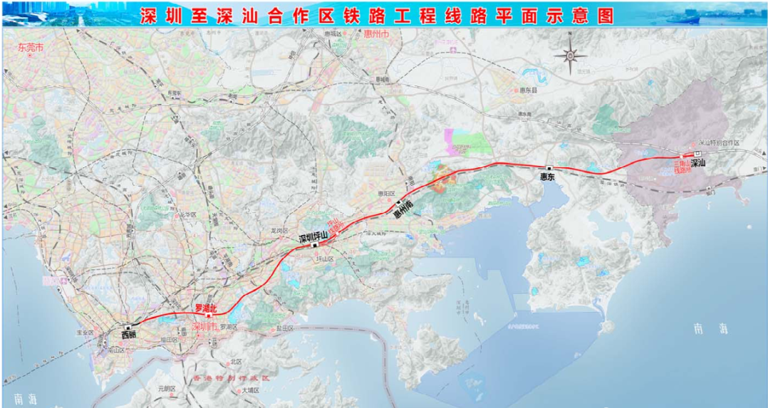 Construction scale: The newly-built Shenzhen Shantou High speed Railway starts from Xili Station, a railway hub in Shenzhen, passes through Luohu, Pingshan, Huiyang and Huidong in Shenzhen, and connects to Shenzhen Shantou High speed Railway Station. The main line is 125.486 km long, with 39 bridges/25,994 linear meters and 18 tunnels/88,447 linear meters. The Xiamen Shenzhen interconnection line is 5.925 single line kilometers, and the Guangzhou Shantou interconnection line is 4.701 single line kilometers; The whole line is set with 6 stations and 2 line posts, as well as relevant reinforcement works in Xili Station comprehensive work area. Among them, the first project (Tanglang Mountain Tunnel Section) has a length of 13.887 km.