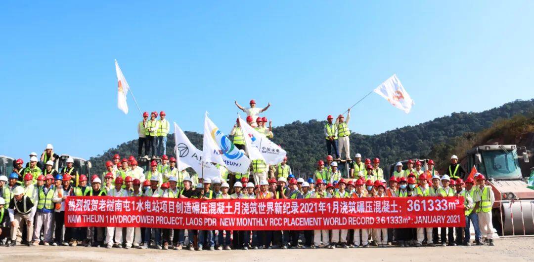 In January 2021, the monthly record of RCC pouring reached 361,300 cubic meters, setting a world record for the pouring volume of similar engineering projects. 16,400 cubic meters of roller compacted concrete were poured in a single day, a new Southeast Asian record. In May 2022, the main part of the project was completed on schedule. With the determination and courage to overcome difficulties and fight hard, the PowerChina team turned the "impossible task" into a reality.