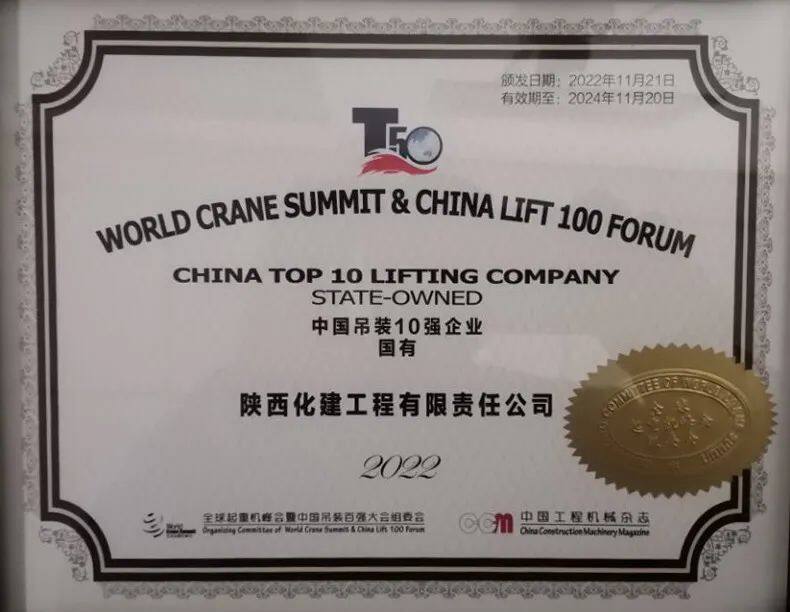 The company has a high-quality and highly skilled lifting operation team, which successfully lifted dozens of kiloton super large equipment at home and abroad, and won more than 60 lifting awards. Among them, 16 hoisting projects were awarded "National Top Ten Classic Hoisting Project Cases", "China's Annual Hoisting Project Cases", "National Classic Hoisting Project Awards" and "National Excellent Hoisting Project Awards". Editor/Zhao E