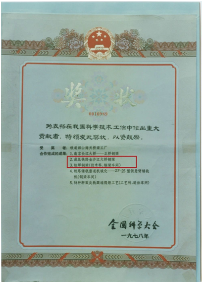 From 1966 to 1968, China Railway Shanqiao carried out a lot of technical transformation on the existing equipment, which improved the work efficiency by 2-3 times (before the transformation, the production capacity of welded steel beams was only 1500 tons/year). It took two years to complete 31 bolted welded steel bridges on the old Chengdu Kunming Railway, with a total of more than 10000 tons of manufacturing tasks. The construction project won the prize of the 1978 National Science Conference.