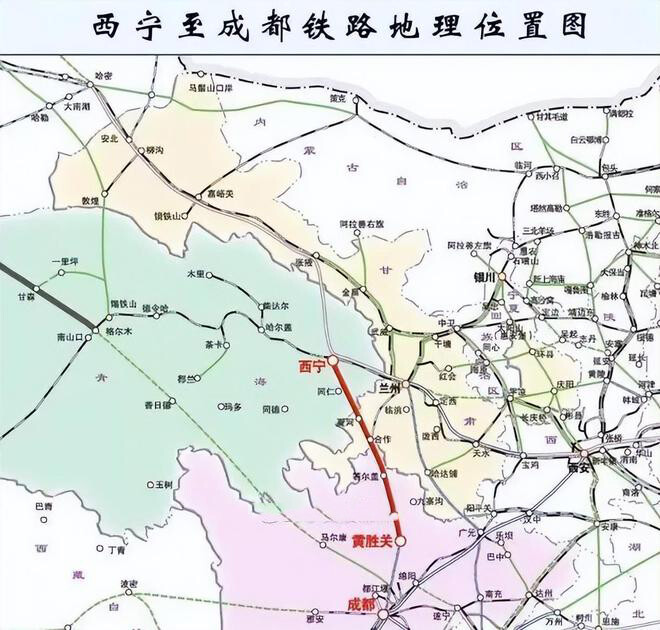 The total length of the line is about 840 kilometers, and the maximum speed is 250 kilometers per hour. The line starts in Xining, passes through Haidong City of Qinghai Province, Huangnan Tibetan Autonomous Prefecture, Gannan Tibetan Autonomous Prefecture of Gansu Province, Aba Tibetan and Qiang Autonomous Prefecture of Sichuan Province, and ends at Chengdu Station. There are 29 stations in total. They are Xining Railway Station, Haidongxi Railway Station, Hualong Railway Station, Jianzha Railway Station, Tonge Railway Station, Gangjia Railway Station, Xiahe Railway Station, Hehe Railway Station, Luqu Railway Station, Langmusi Railway Station, Huahu Railway Station, Assi Railway Station, Ruoergai Railway Station, Banyou Railway Station, Hongyuan Railway Station, Huangshengguan Railway Station, Chuanzhusi Railway Station, Songpan Railway Station, Zhenjiangguan Railway Station, Taiping Railway Station, Longtang Railway Station, Maoxian Railway Station, Gaochuan Railway Station, Anxian Railway Station, Mianzhu Railway Station, Shifang West Railway Station, Sanxingdui Railway Station, Qingbaijiang Railway Station East Railway Station, Chengdu East Railway Station.