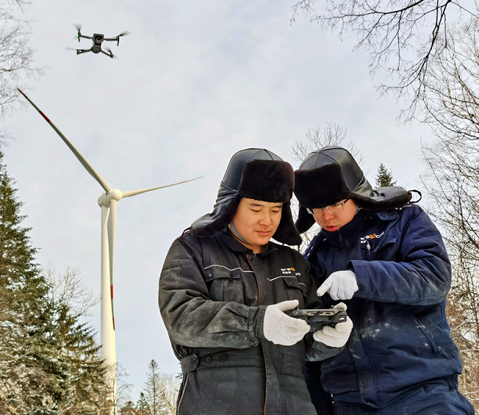 Operation and maintenance personnel of CGN New Energy carry out inspections of wind turbines