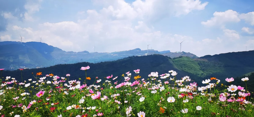 The windmill and flower sea landscape created by the Leye wind power project of CGNPC