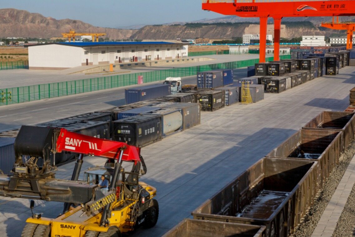 In the early spring, everything blooms. At the railway port container station in Lanzhou New District, the first state-level new area in Northwest China, gantry cranes rise and fall from time to time, and shuttle buses shuttle back and forth, creating a busy scene.
