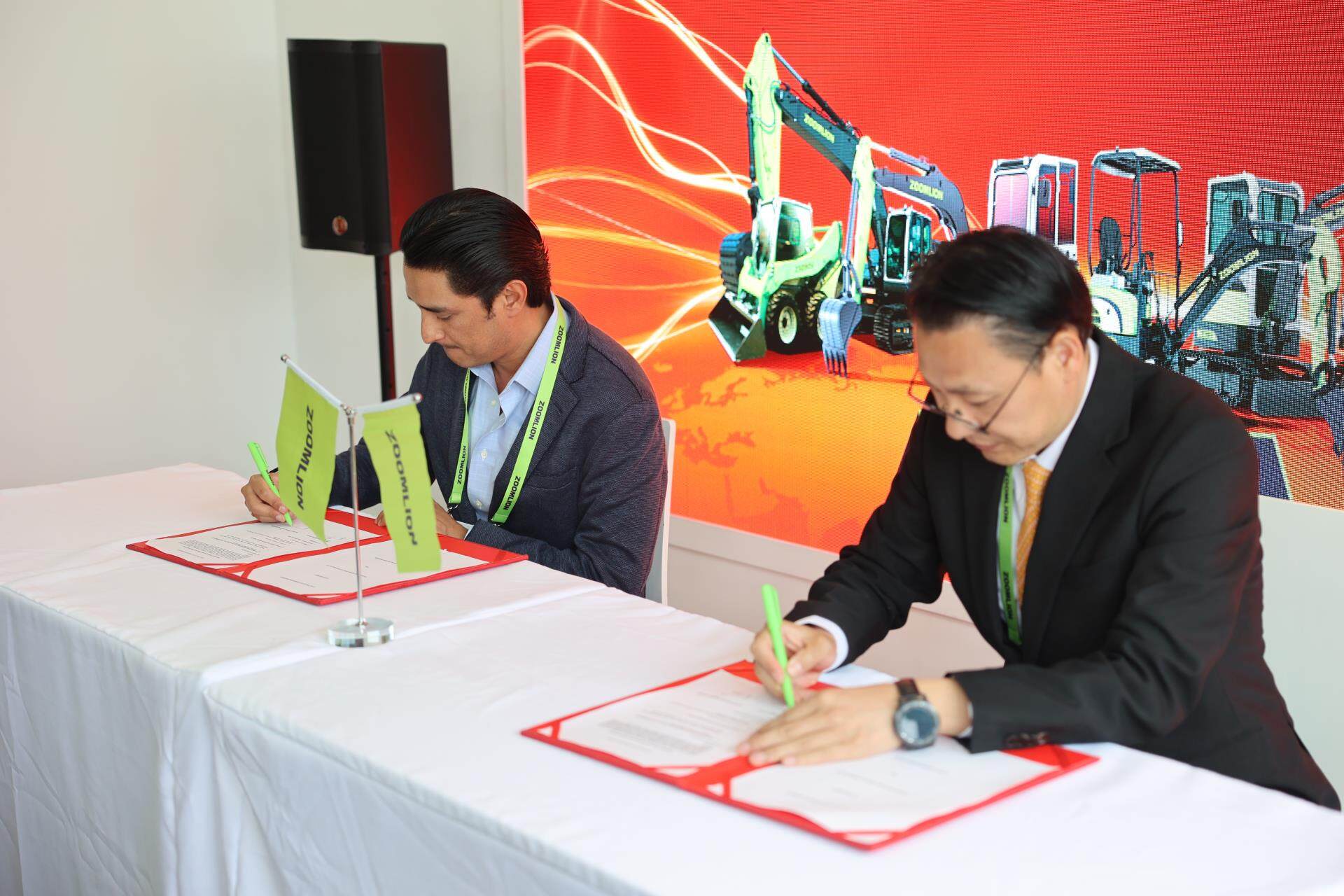 Zoomlion's exhibition area is full of visitors and signing contracts