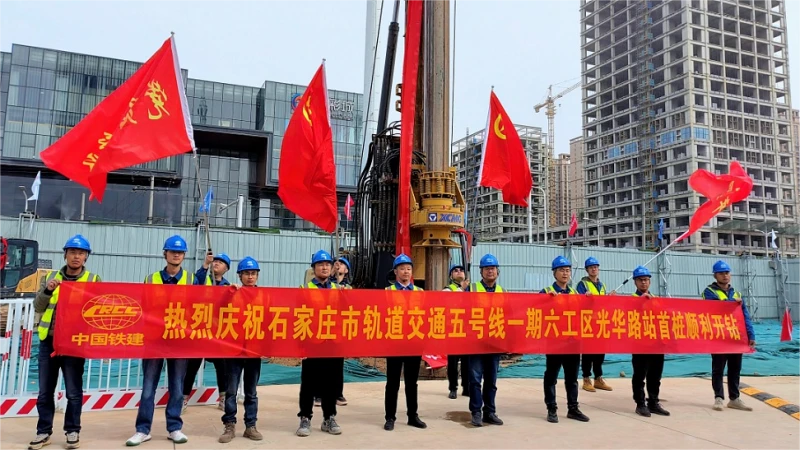 On March 23, 2023, the first pile of Guanghua Road Station of Shijiazhuang Metro Line 5 Phase I project undertaken by China Railway Construction Bridge Bureau was successfully drilled, ushering in the first important construction node-the first pile foundation was laid on the whole line, marking With the project kicked off the main structure of the prelude to construction.