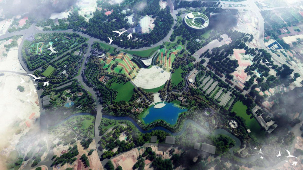 The hyperboloid national flower podium is located in it, surrounded by string-shaped green belt flower beds, musical fountains and artificial lakes complement each other... The river bank that was once overgrown with weeds and piled up with domestic and industrial waste has undergone a transformation after only 11 months of construction. It has become the most functional and largest urban comprehensive square in Africa - Segel Park Friendship Square.
