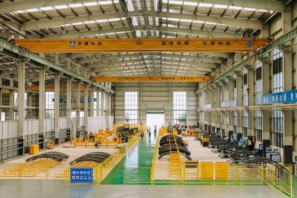 The second extension segment production line of Fuzhou Metro is an automatic assembly line integrating various processes such as concrete mixing, pouring, forming and curing, with an annual maximum capacity of more than 15000 rings.