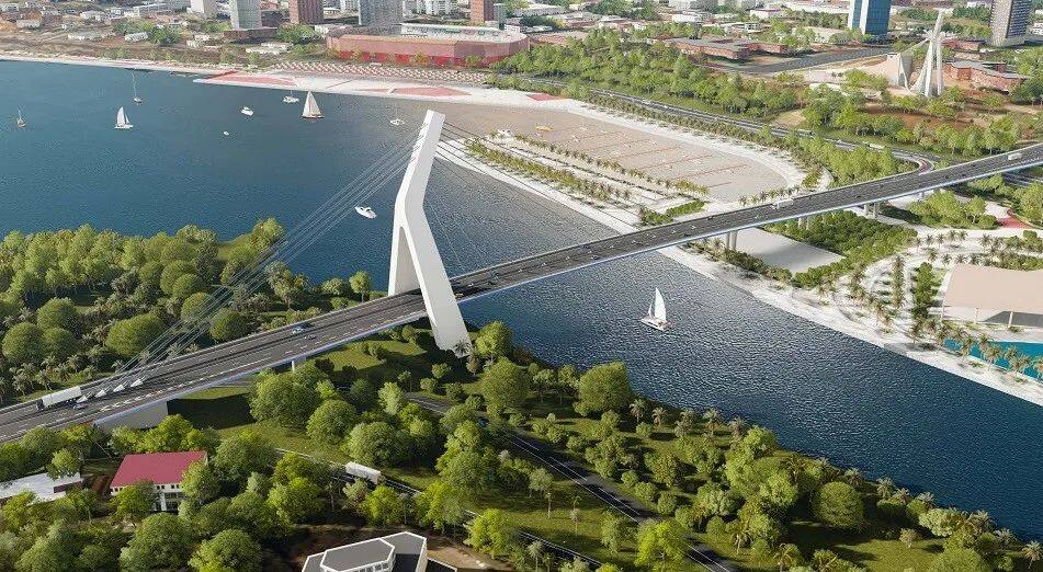 The Cocody Bridge, also known as the Abidjan Five Bridge, was financed by the Islamic Development Bank and adopted international bidding procedures. China Road and Bridge won the bid and was responsible for the construction of the project. The total cost of the project was 97.872 trillion West French francs (approximately US$170 million). The total length is 1.63 kilometers, the main bridge is 630 meters long, and the main span is 200 meters. It connects the Cocody and Plateau districts of Cote. It uses the most advanced cable-stayed embedded LED light landscape system, which can display orange, white and green (the colors of the Cote flag). ) is the first cable-stayed bridge in Côte d'Ivoire and the largest cable-stayed bridge in West Africa. It is known as the CBD Pearl of Abidjan Administrative Region.