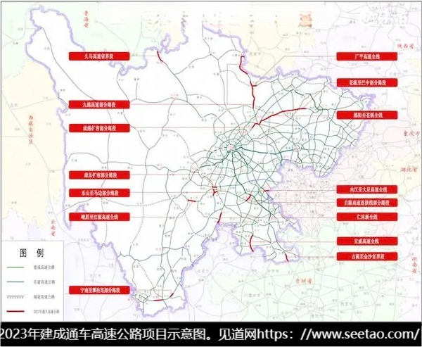 In 2023, 15 projects and 624 kilometers of expressways in Sichuan Province will be completed and opened to traffic. Among them, 143 kilometers of projects (road sections) from Neijiang to Dazu, Yibin to Weixin, Jiuzhi to Malkang, and Chengle expansion were completed and opened to traffic before the third quarter. With the addition of the 481 kilometer section that is about to be connected to the internet, the total mileage of Sichuan Expressway will reach 9803 kilometers, ranking third in the country.