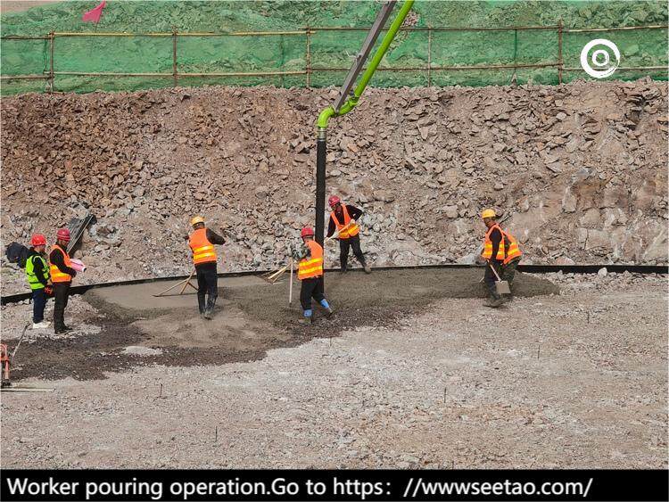 At the construction site of the million kilowatt wind storage base project in Tuquan County, Inner Mongolia, workers are distributed in their respective work areas and are orderly pouring the foundation of the first wind turbine. Various construction tasks are being carried out in an orderly manner.