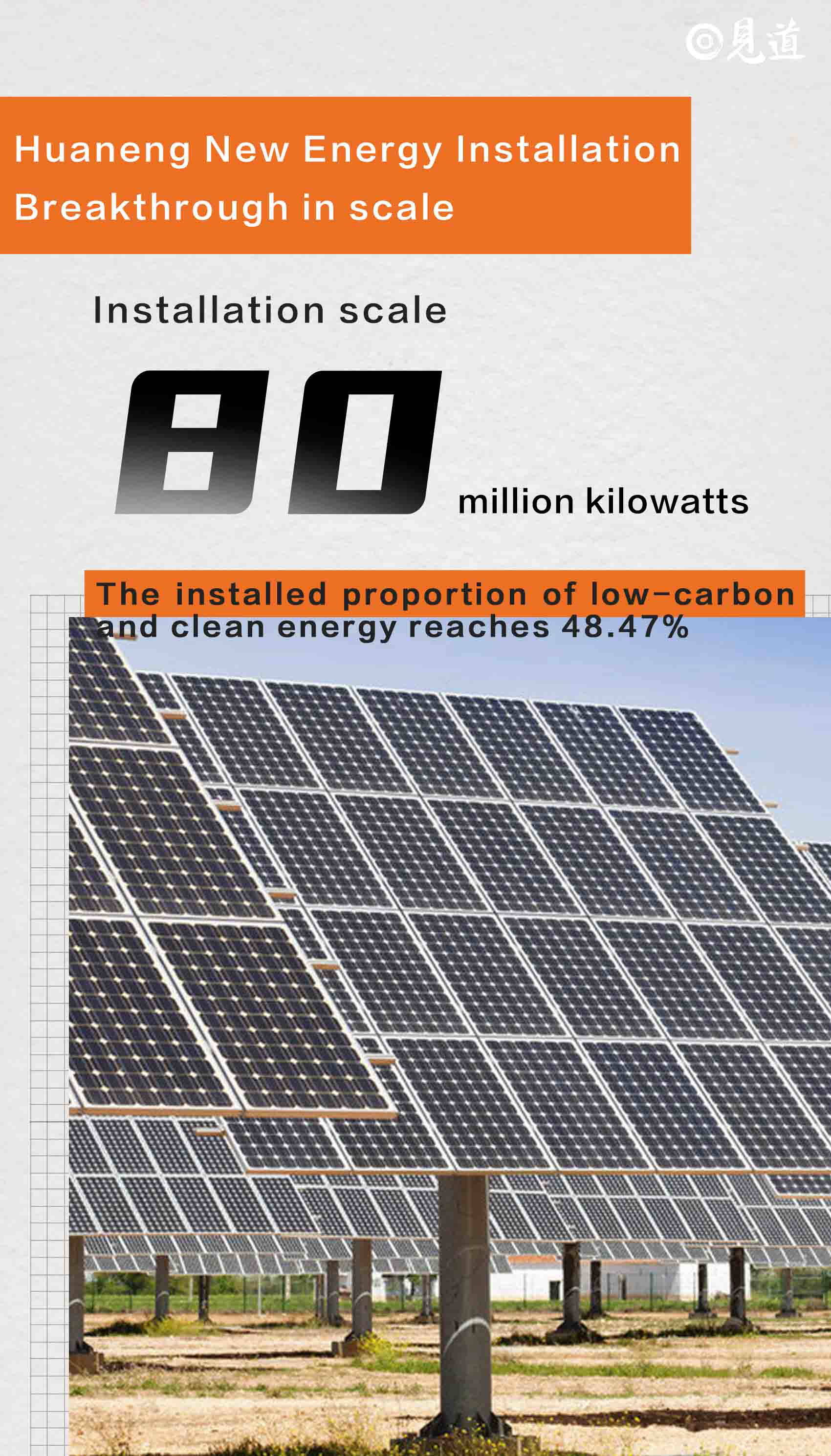 The installed capacity of new energy exceeded 80 million kilowatts. At this point, the company's total installed capacity of full-caliber power generation exceeded 250 million kilowatts, and the proportion of low-carbon clean energy installed capacity reached a new high of 48.47%.