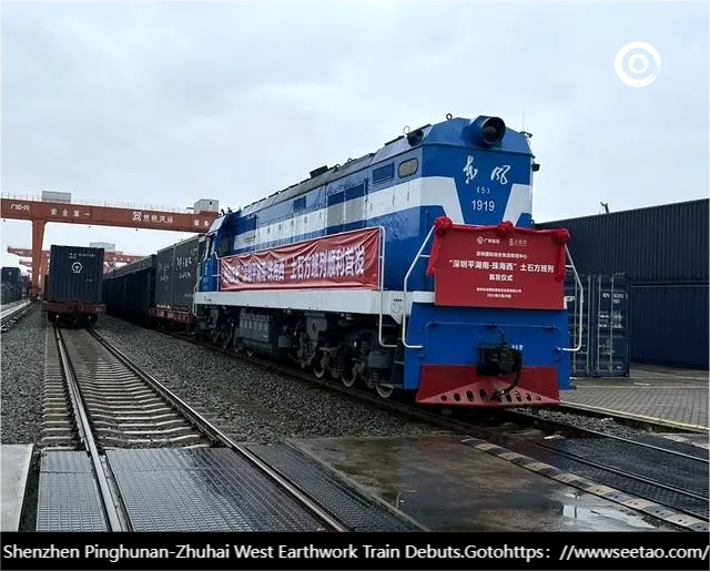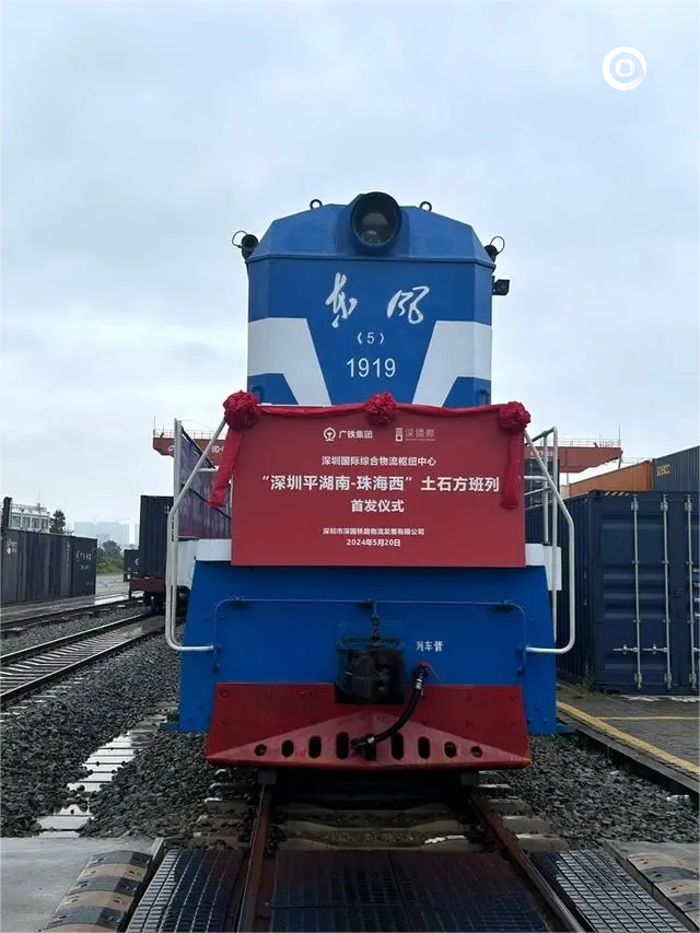 At about 15:00 on May 20, 2024, an open-top container train loaded with soil slowly drove out from the Shenzhen Pinghu South Cargo Yard and drove all the way to Zhuhai West Railway Station. This is the first express freight train from Pinghunan in Shenzhen to the west of Zhuhai, marking the official opening of a new public transit rail logistics channel between the core cities of the Guangdong-Hong Kong-Macao Greater Bay Area to serve "green construction".