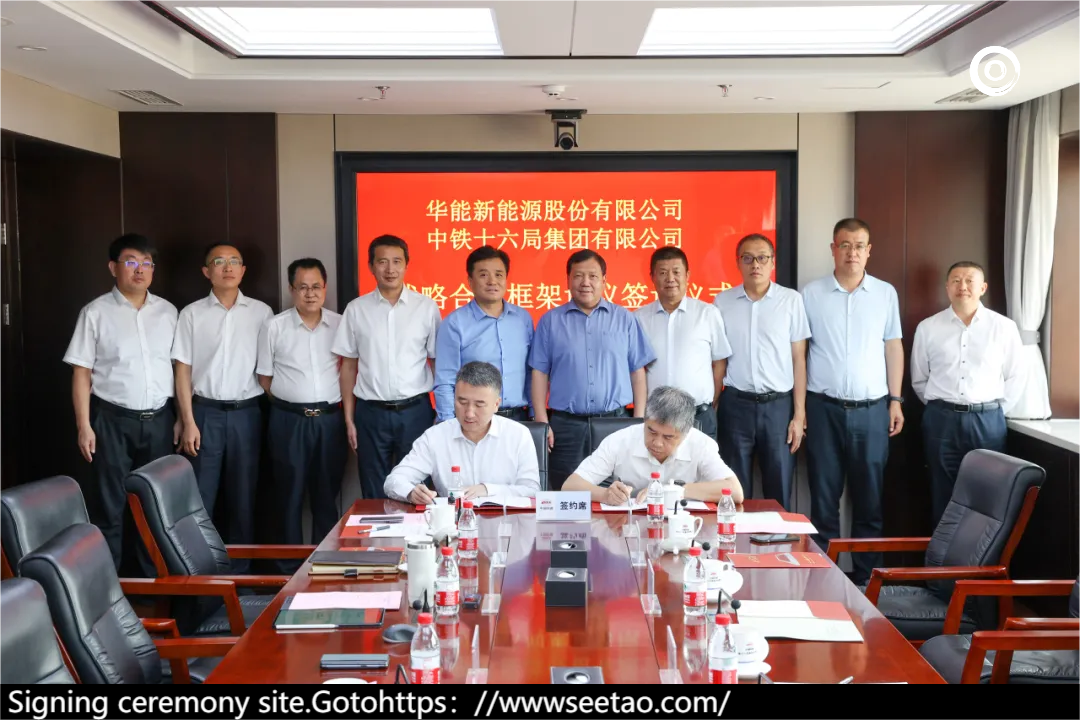 On the afternoon of May 28, 2024, China Railway 16th Bureau and Huaneng New Energy Co., Ltd. signed a strategic cooperation framework agreement in Beijing. Wang Hongwei, general manager and deputy secretary of the Party Committee of China Railway 16th Bureau, held a discussion with Wang Lijun, secretary of the Party Committee and chairman of Huaneng New Energy Co., Ltd. and witnessed the signing. He Ming, chief accountant of Huaneng New Energy Co., Ltd., and Chu Yingkui, deputy general manager of China Railway 16th Bureau, attended the discussion and signed on behalf of both parties.