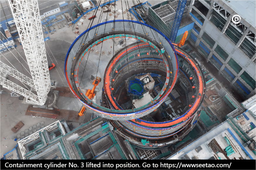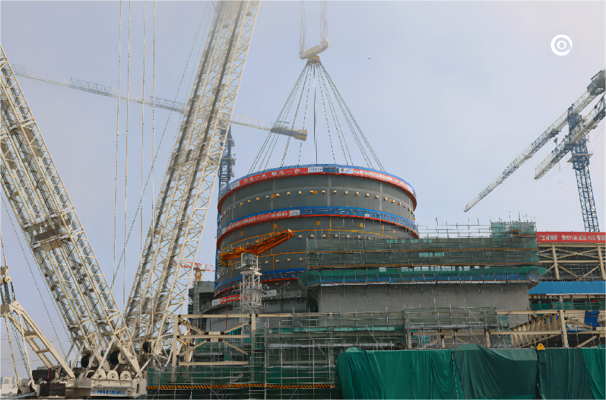 On June 15, 2024, the four-ring module of the nuclear island steel containment cylinder of Unit 3 of Haiyang Nuclear Power Plant successfully completed the lifting operation and was accurately installed in the predetermined position.