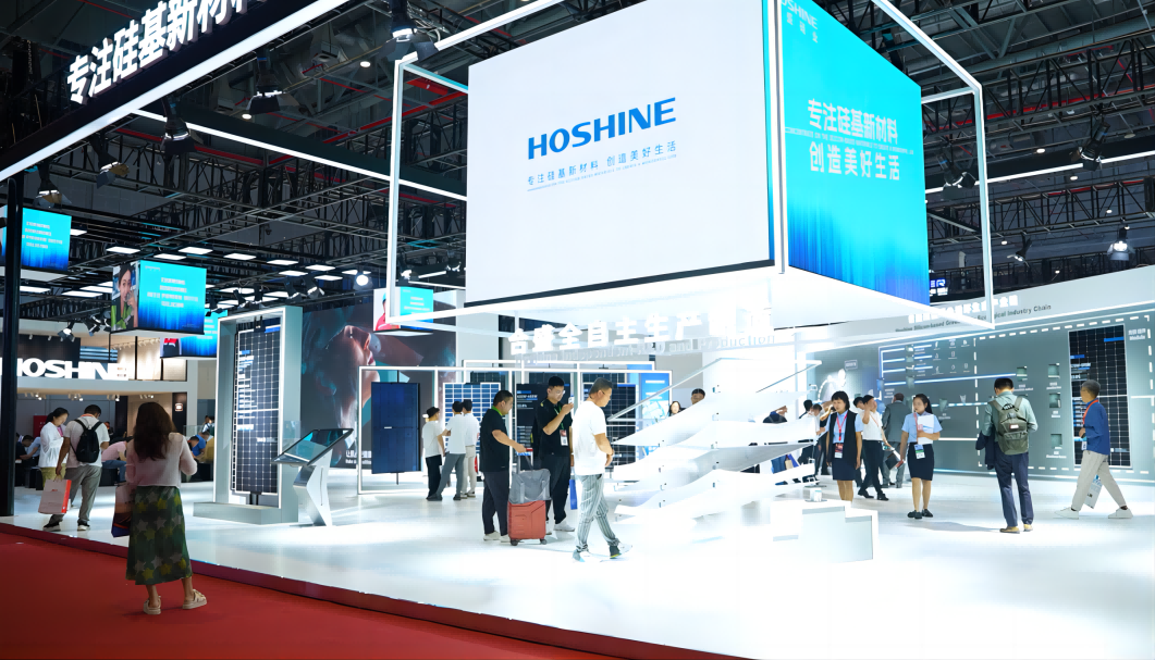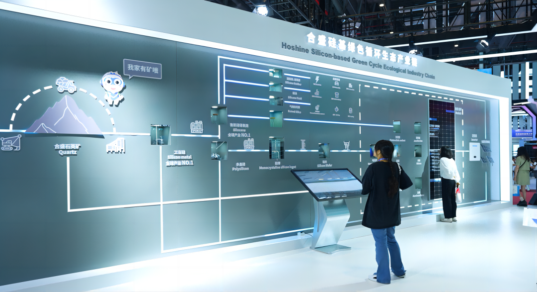 This exhibition Hesheng Silicon industry from quartz ore - industrial silicon - polysilicon - monocrystalline silicon - cell - photovoltaic glass - frame - film - welding tape - silicone sealant & potting-sealant - photovoltaic modules the world's longest and most competitive and most distinctive photovoltaic cycle ecological industry chain debut, At the same time, two new products TOPCon 210R rectangular battery and anti-ash self-cleaning component were launched.
