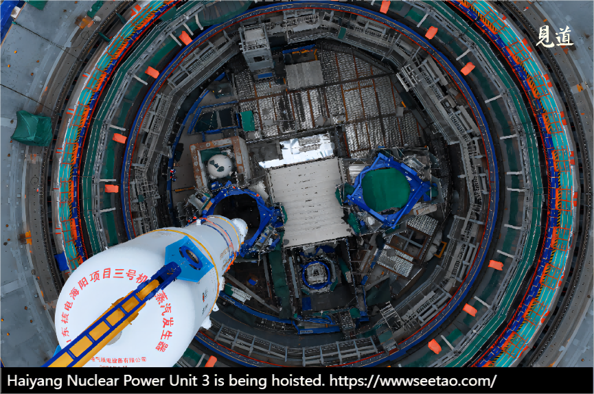 On July 1, 2024, the first steam generator of the nuclear island of Haiyang Nuclear Power Unit 3 was successfully hoisted into place, marking a phased victory in the installation of the core equipment of the unit.