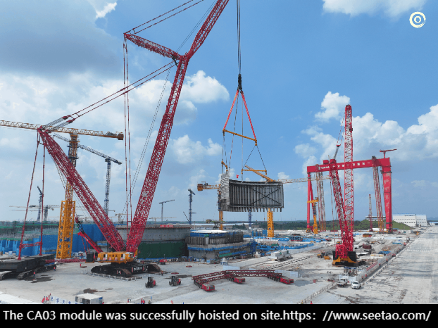 At 5:08 p.m. on August 30, 2024, the first phase of's nuclear power project in Lianjiang, Guangdong Province, ushered in an important milestone: the CA03 module, the core component of Unit 1, was successfully hoisted and placed in its intended position after careful planning and close collaboration. The operation, carried out by a powerful 3,600-ton crawler crane, was like a skilled dancer, and went through complex and delicate steps such as lifting, stable hovering, precise rotation, smooth landing and fine-tuning, laying a solid foundation for the internal construction of the nuclear island reactor plant.