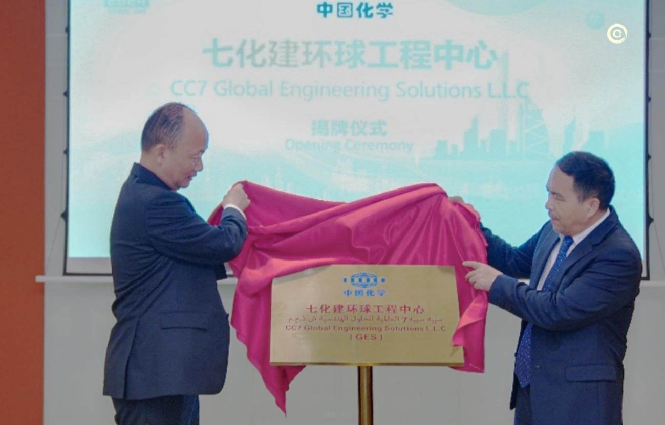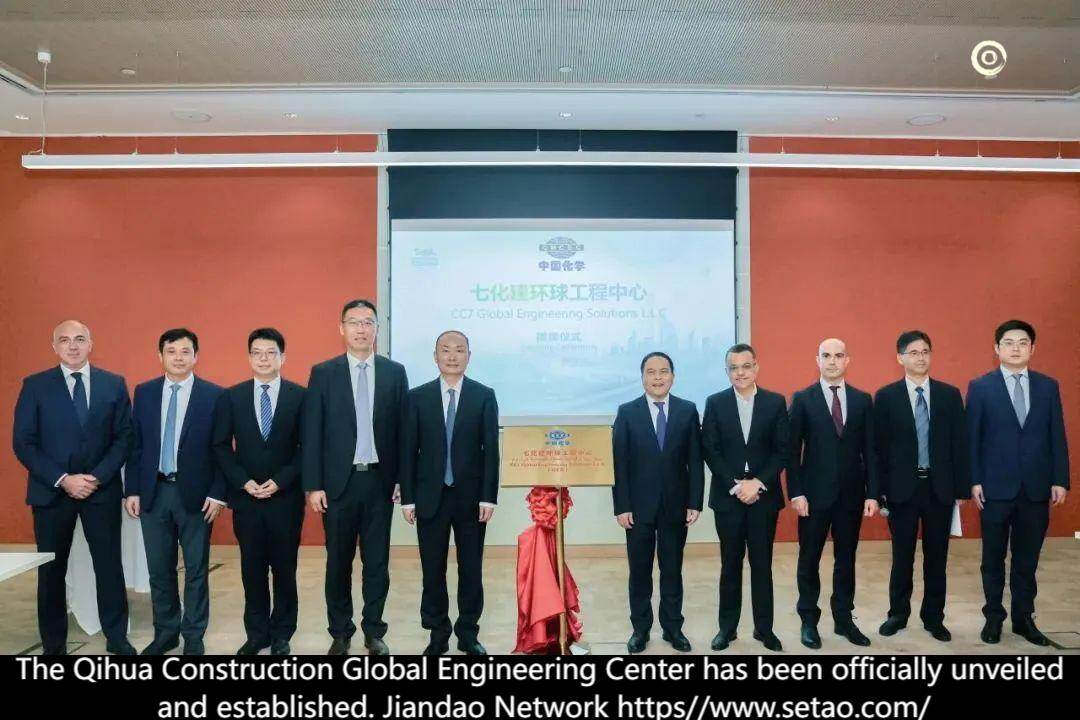 Recently, the Global Engineering Center of China National Chemical Seventh Construction Company was officially unveiled and established in Dubai. Mo Dingge, Secretary of the Party Committee and Chairman of the Group Company, and Long Haiyang, Secretary of the Party Committee and Chairman of the Company, attended the ceremony and jointly unveiled the plaque for the Global Engineering Center.