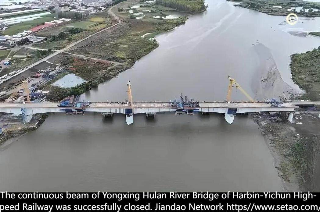 On September 25, 2024, the construction of North China High speed Railway will usher in an important milestone. The Yongxing Hulan River Bridge in the Harbin-Yichun High-speed Railway project has successfully closed its continuous beams. This feat not only means that the longest and most technically challenging beam erecting channel on the whole line has been unblocked, but also lays a solid foundation for the subsequent construction of high-speed railway bridges, greatly promoting the progress of the entire project.